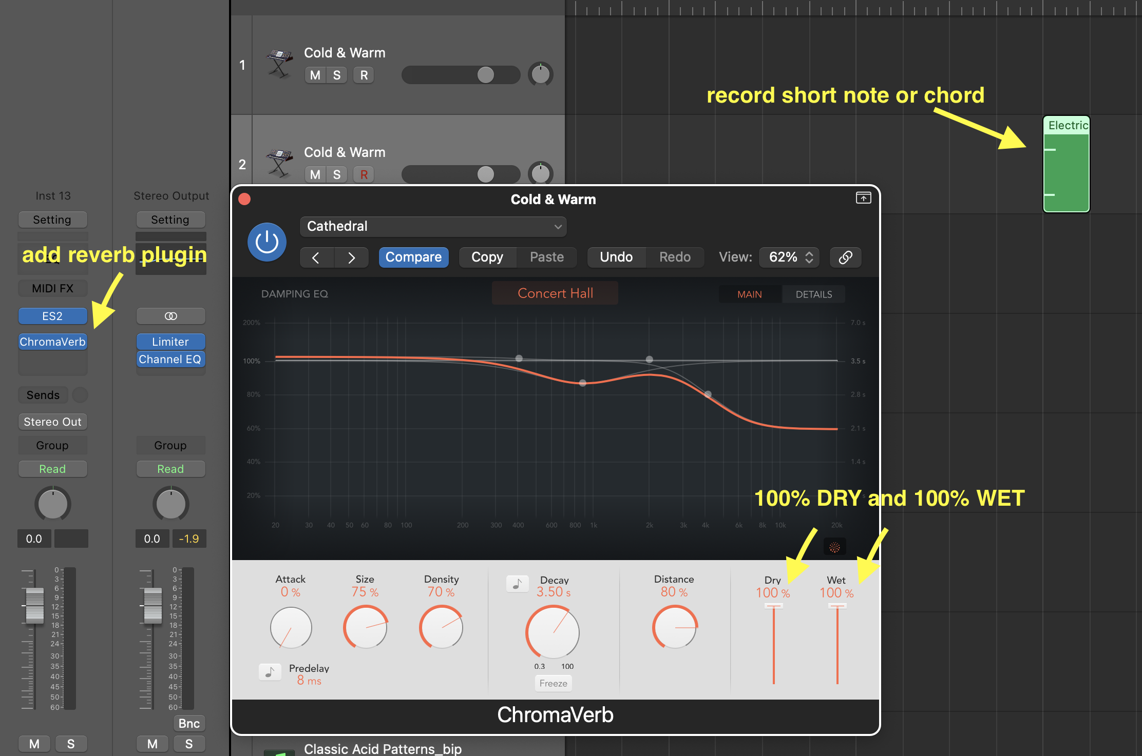 • On the next plugin slot after the EQ, choose "ChromaVerb". Choose the "Concert Hall" preset (in the "Halls" category).