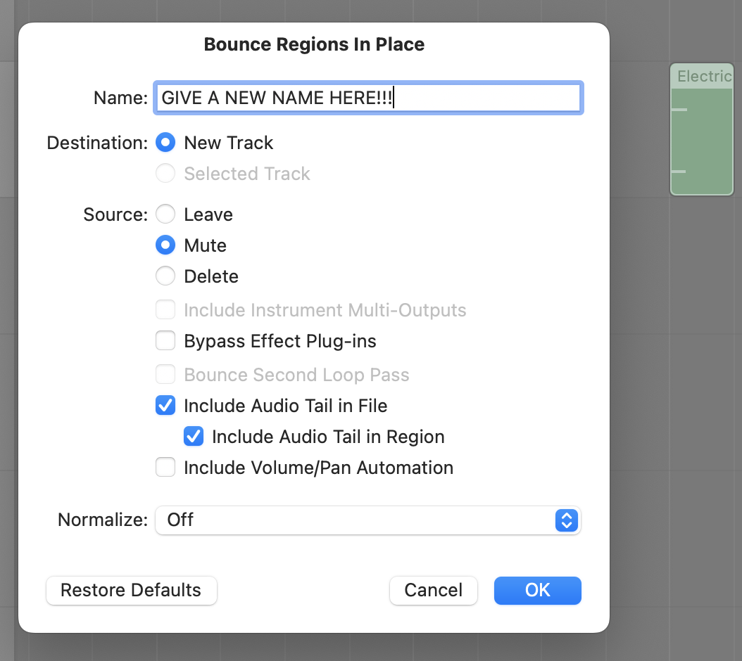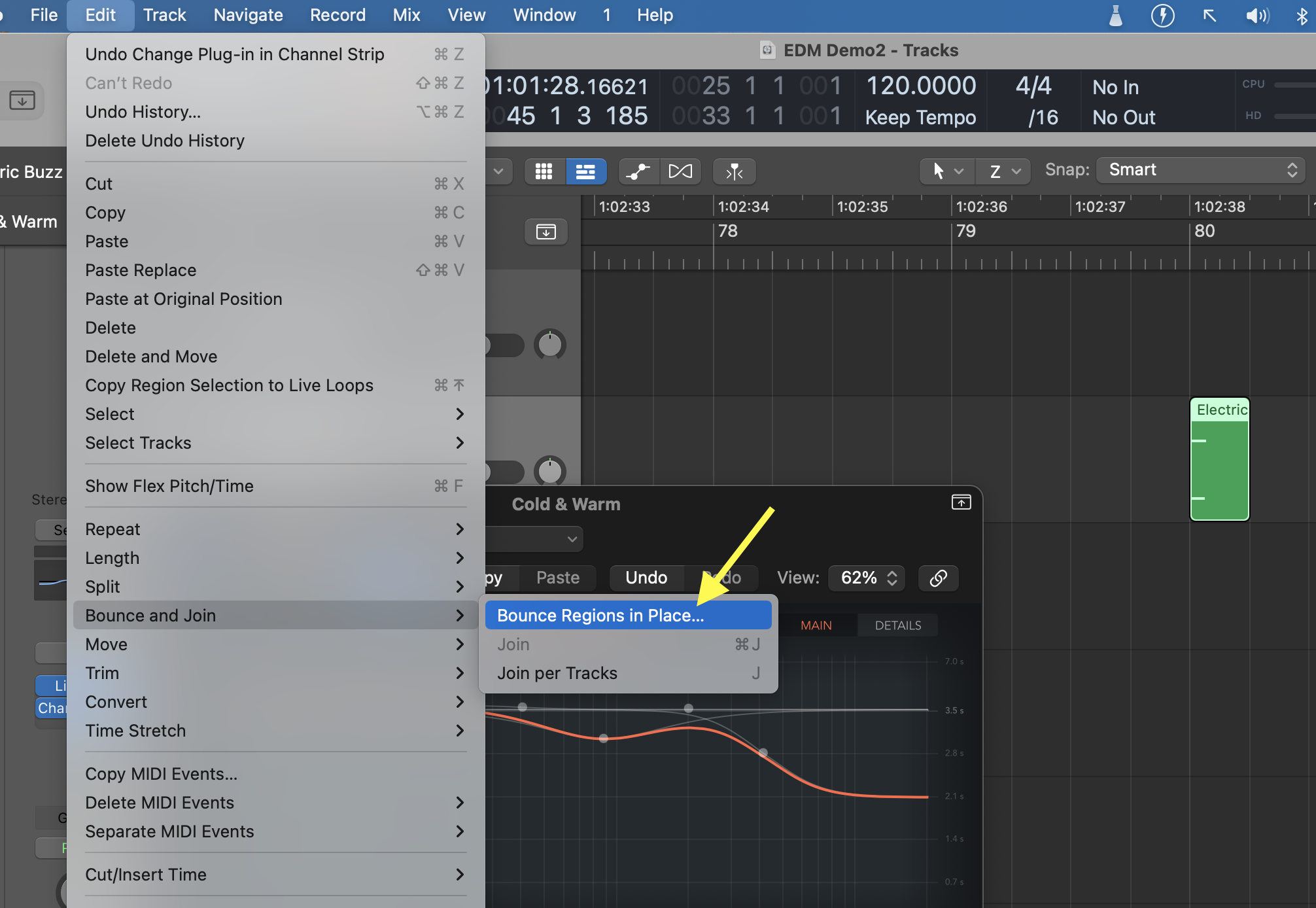 • Select the MIDI region of the very short note and go to Edit>Bounce and Join>Bounce in Place