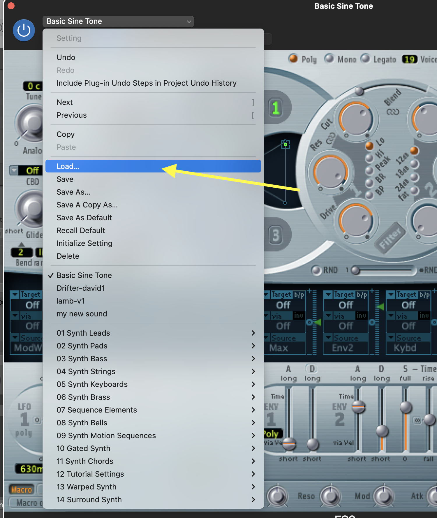 • In the ES2, choose the "Basic Sine Tone" file, which you must download here: