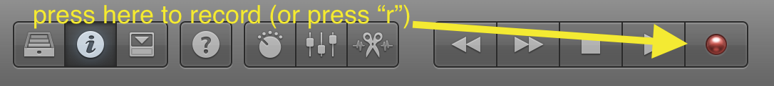 9- Listen to your test: Turn OFF the record enable button, UNMUTE the speakers (push the "Monitor" dial), bring the playhead to the beginning of your clip, and press spacebar. You should hear your test recording. Ask yourself the following questions: