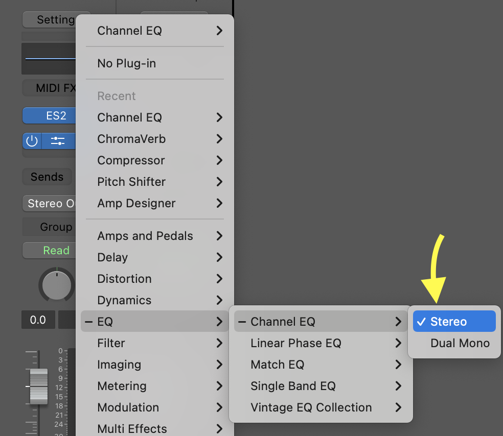 • Add an EQ plugin to the track.