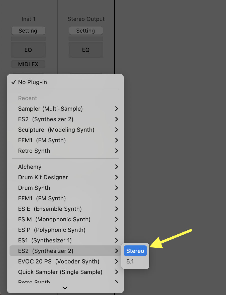 • On the newly created track, choose the ES2 synthesizer.