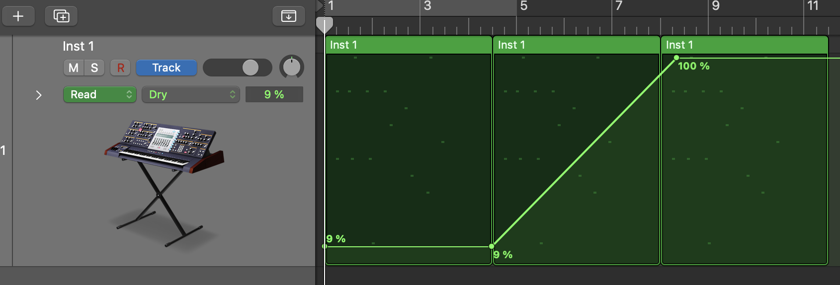 ***NOTE: almost anything you can click on in Logic can be automated the same way. In future assignments, you will need to automate volume and panning; make sure you know how to do this (HINT: it's the same as above, except choose "volume" or "panning" on the track menu).***