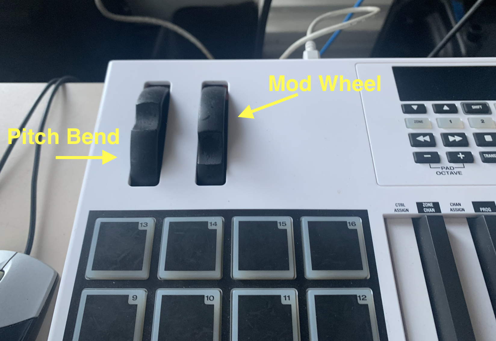 • Play some notes on the keyboard; you should hear sine tones. Try using the PITCH BEND wheel on the keyboard.