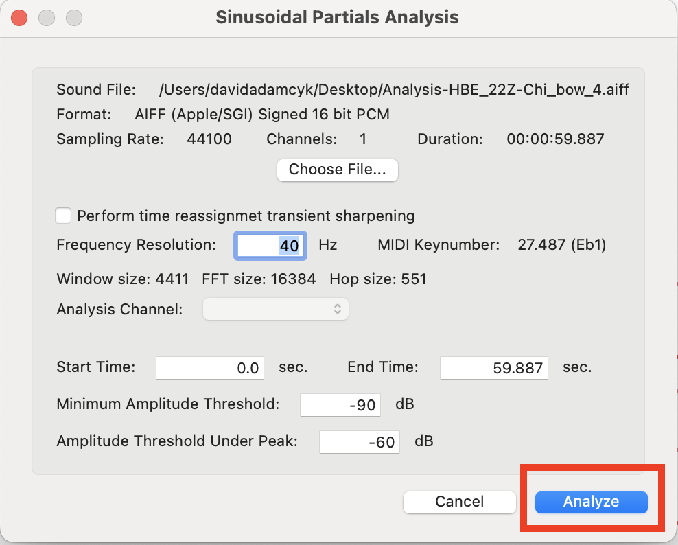 • Open a sound in Spear (do not change any of the analysis parameters, simply click Analyze)
