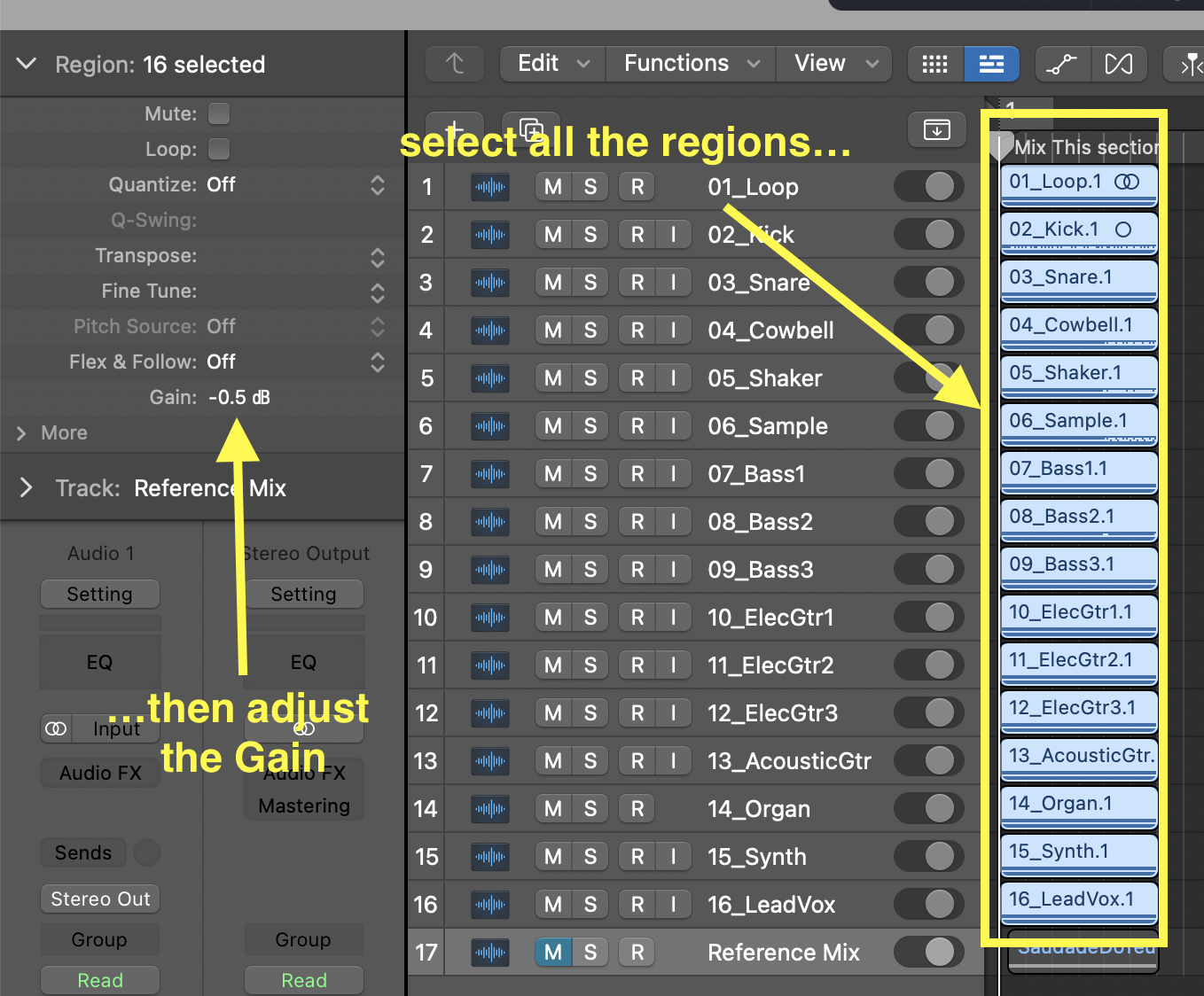 • For this assignment, we will aim to make our mixes sound as close as possible to a reference mix, which I've included on the very bottom track of each Logic project. This will force you to listen carefully to the reference and try to reproduce what you're hearing with the tools you have available.