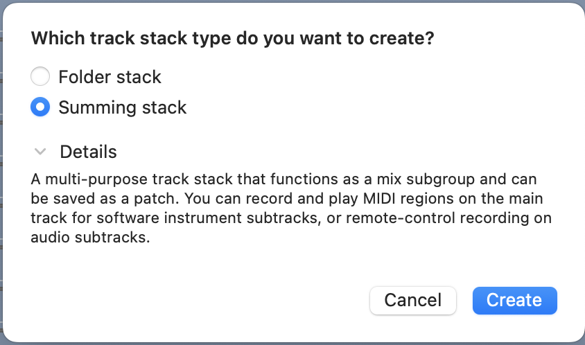 • Organize your tracks into sub-groups by instrument (select tracks, then in the top menu: Tracks->Create Track Stack; choose create "summing stack").